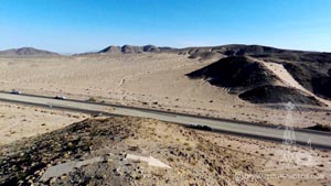 Department of Commerce intermediate field, Site 16, Los Angeles-Salt Lake Airway. One mile N. of city and 6 miles N. of Soda Lake. Altitude, 1,000 feet. Square, 159 acres, 2,625 by 2,625 feet, sand, level, natural drainage. Directional arrow marked "16 LA-SL." Beacon tower on S. Beacon, boundary and approach lights. Beacon, 24-inch rotating, with green course lights flashing characteristic "6" (_._). No servicing facilities.