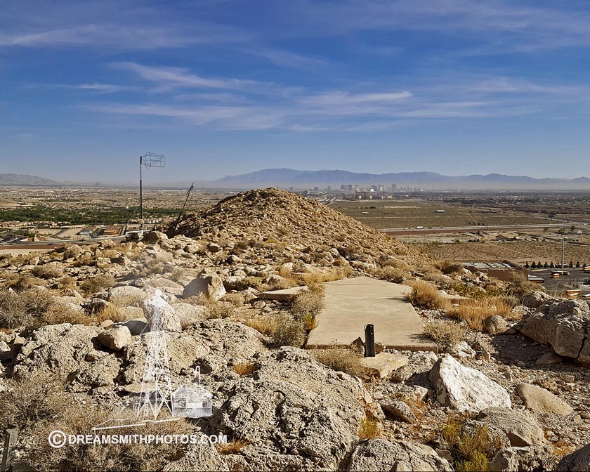 In general, the site is on a small hill at the southernmost point of I-15 in Las Vegas at the St. Rose Parkway exit. To the west is the freeway and a new housing development, to the north is a school bus station (with the southern tip of the strip), to the east is the M Resort and Casino and the south is the empty beginning of the long drive to LA (technically the township of Jean, primarily home to a gypsum mining operation and new Speed Vegas attraction).