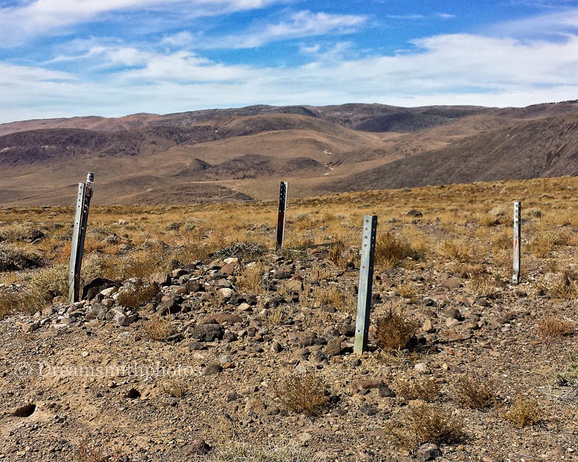 The Derby Dam Beacon site is located on the north side of I-80 east of Sparks, Nevada. To get to it though, you have to becoming westbound, going towards Sparks. If you ‘blink’ you will miss the dirt road leading to the arrow. You have to pull onto the shoulder and then pull behind the guard rail. At this point you will see a dirt road along with a closed gate. There were no signs saying ‘Keep Out’ on the gate. All the property beyond is owned by the Bureau of Land Management. We just made sure the gate was secure after going thru.