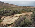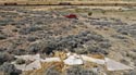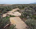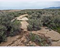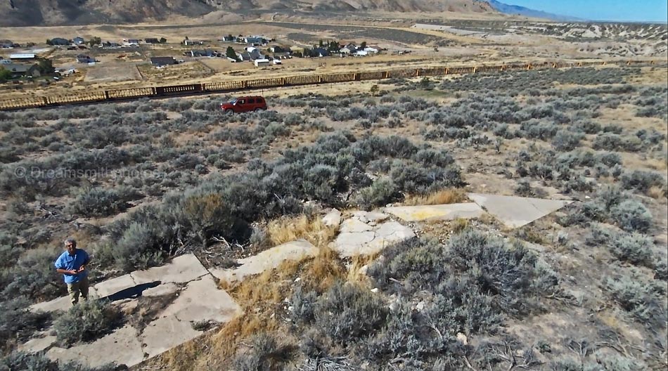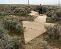 The arrow is located in the middle of tall sage brush, and is very difficult to locate without precise gps coordinates to guide you to it. All five portions of the arrow are still there, but it is in extremely poor condition. Settling of the arrow has caused it to crack and break away. The arrow is 58 feet in length.