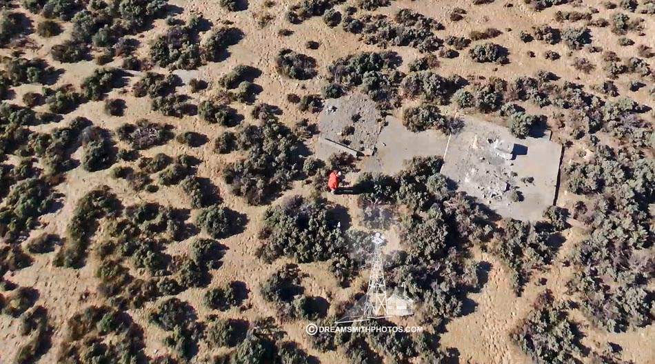 The remains of the arrow are in very poor condition. The only thing remaining of the arrow is the base on which the generator shed stood, and the base where the beacon stood; along with a six foot wide concrete portion that connects the two bases. The arrow portion itself is completely missing, so it was impossible to determine in which compass heading the arrow pointed. The generator pad is fairly large, measuring 15 feet in length and 18 feet wide. The beacon pad is 12 feet wide and 11 feet long. The three portions still left measure approximately 40 feet.