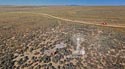 Bitter Creek Site #20 is located a little over one mile off of I-80, at the Bitter Creek Road exit. The terrain here is a flat plain for miles in all directions. There is a well maintained dirt road to the arrow. No four wheel drive is needed.