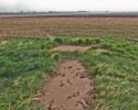 The arrow is in very poor condition. The 5 main portions of the arrow have broken apart from each other, and have begun settling into the ground. The point of the arrow is missing. It had stopped raining just before we got there, so it was a muddy trek out to the arrow. There was even mud covering most of the arrow. Due to the muddy & wet ground, no measurements were taken.