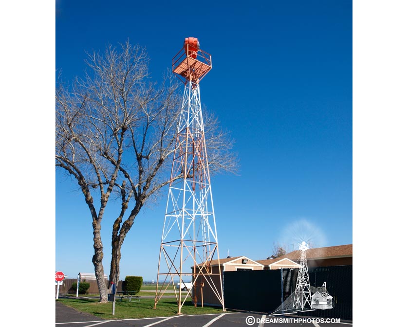 This beacon was used by the early airmail pilots to fly their planes over "The Hump" as the route from Reno to San Francisco was commonly called. It was located on Contract Air Mail Route No. 18 at site No. 11B in Colfax, and moved to it's current location about 1965. According to Tony Lattuca, airport manager, the original beacon light was replaced just a few years ago, after it stopped working. The had to exchange it to get the current beacon, which is similar to the original. This beacon light operates from dusk to dawn daily. |