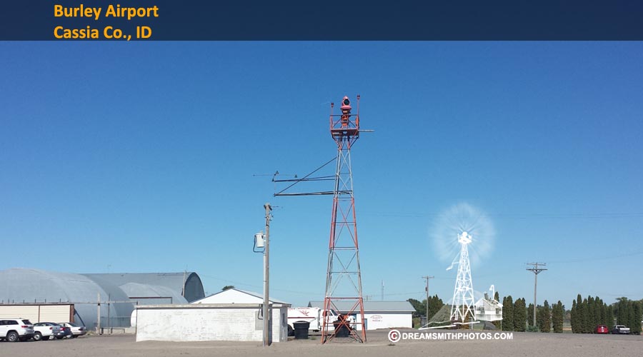 The Station is at the Burley Airport. It is a Standard Civil Aeronautics Administration Beacon which consists of a revolving beacon on the top of a steel tower which is approximately 30 feet high. The beacon flashes green and white. The flashing white light was used for pointings.