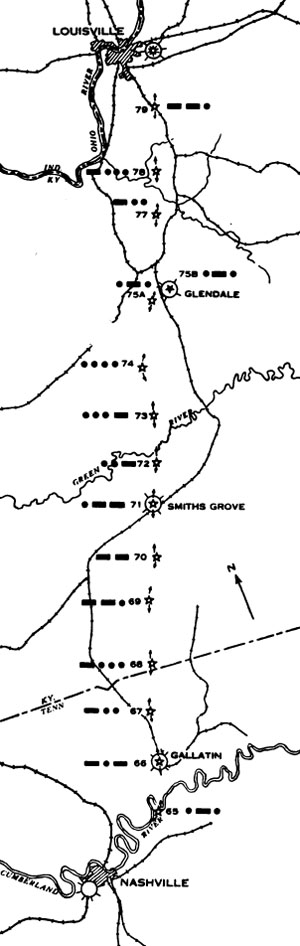 Nashville-Louisville section: Bids for installation of intermediate fields at Smiths Grove, Ky., were opened on April 21, and it is expected that actual work will be started about June 1. The contract has been awarded for installing sites 75-A and 75-B in place of sites 75, 76, and a 763-mile blinker. The contractor who will perform this work has commenced operations. |