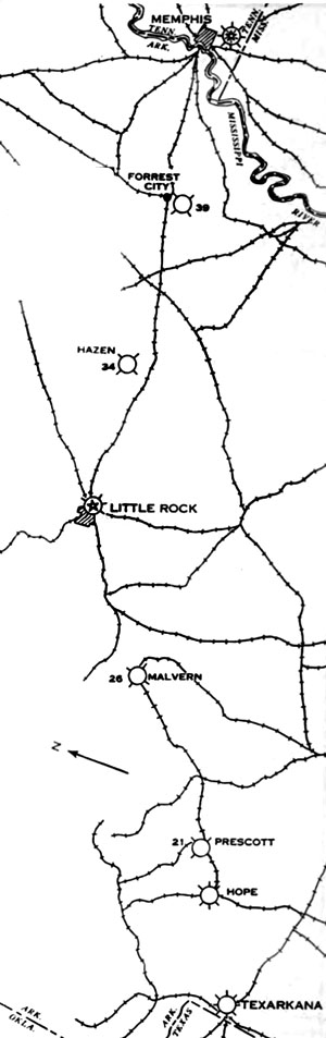 Little Rock-Nashville section.—Bids for installing lighting facilities involving about 26 beacons, 4 of which will be located at intermediate landing fields, will be issued in the near future for opening the latter part of May. |